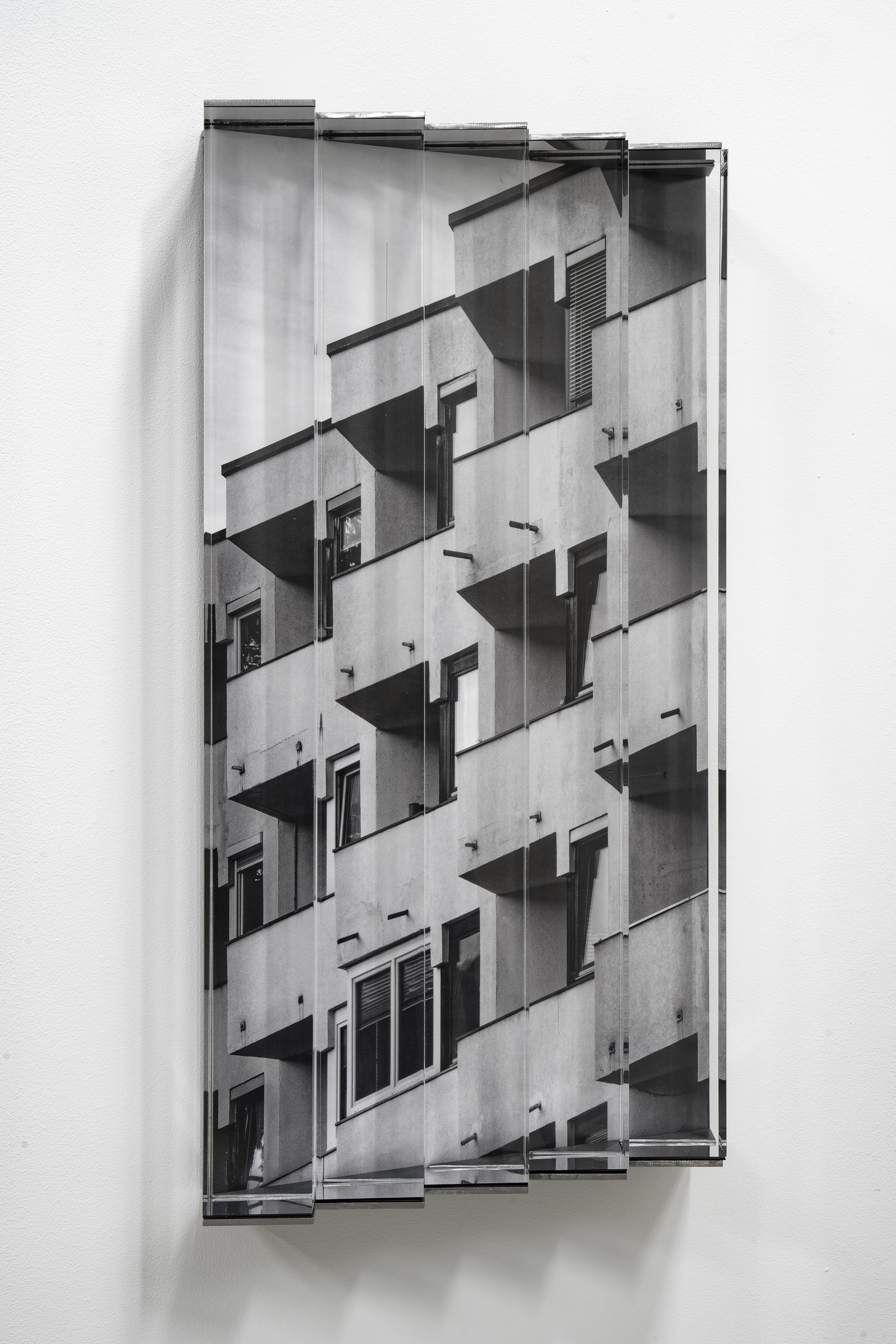Thierry Géhin richtet den Blick auf Schwellenräume und das Verhältnis von drinnen und draußen, sichtbar und unsichtbar, öffentlich und privat – und den schmalen Grat individueller Gestaltung in vorgegebenen Gefügen. Die Wahrnehmung architektonischer Gleichförmigkeit hinterfragen Sinta Werner und Markus Wüste mit ihren Verschiebungen von Blickwinkeln. Mit bewusst einfach gehaltenen geometrischen Strukturen unseres gebauten Alltags machen sie deutlich, dass unser Wissen über gebaute Formen ein unvoreingenommenes Sehen kaum zulässt. Im Kontrast dazu stellt Michele Galassi ein Wohnprojekt für andere Lebensrealitäten vor und wirft damit Fragen nach Ausschlüssen, Anpassung und Chancen in der Mehrheitsgesellschaft auf.