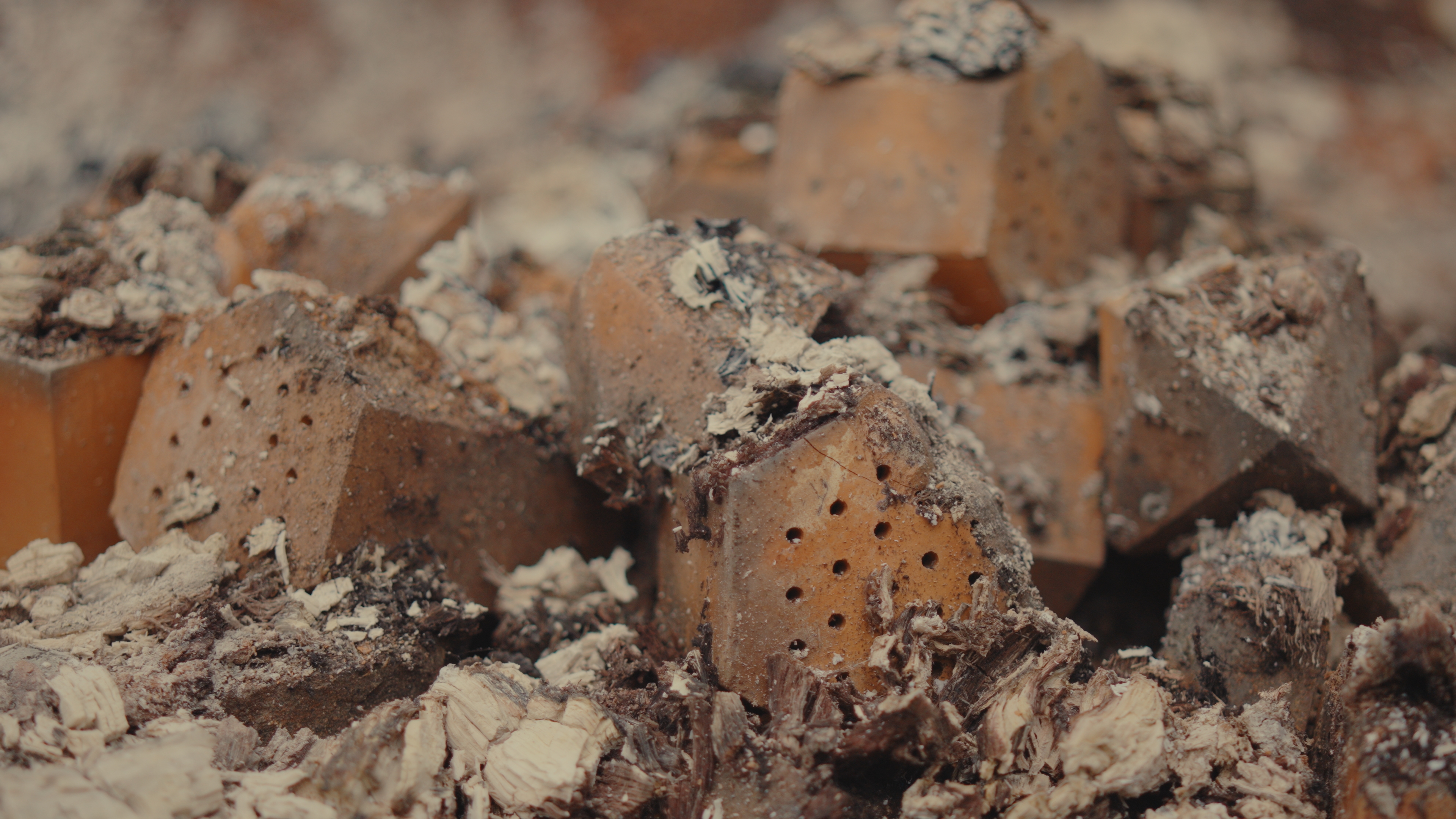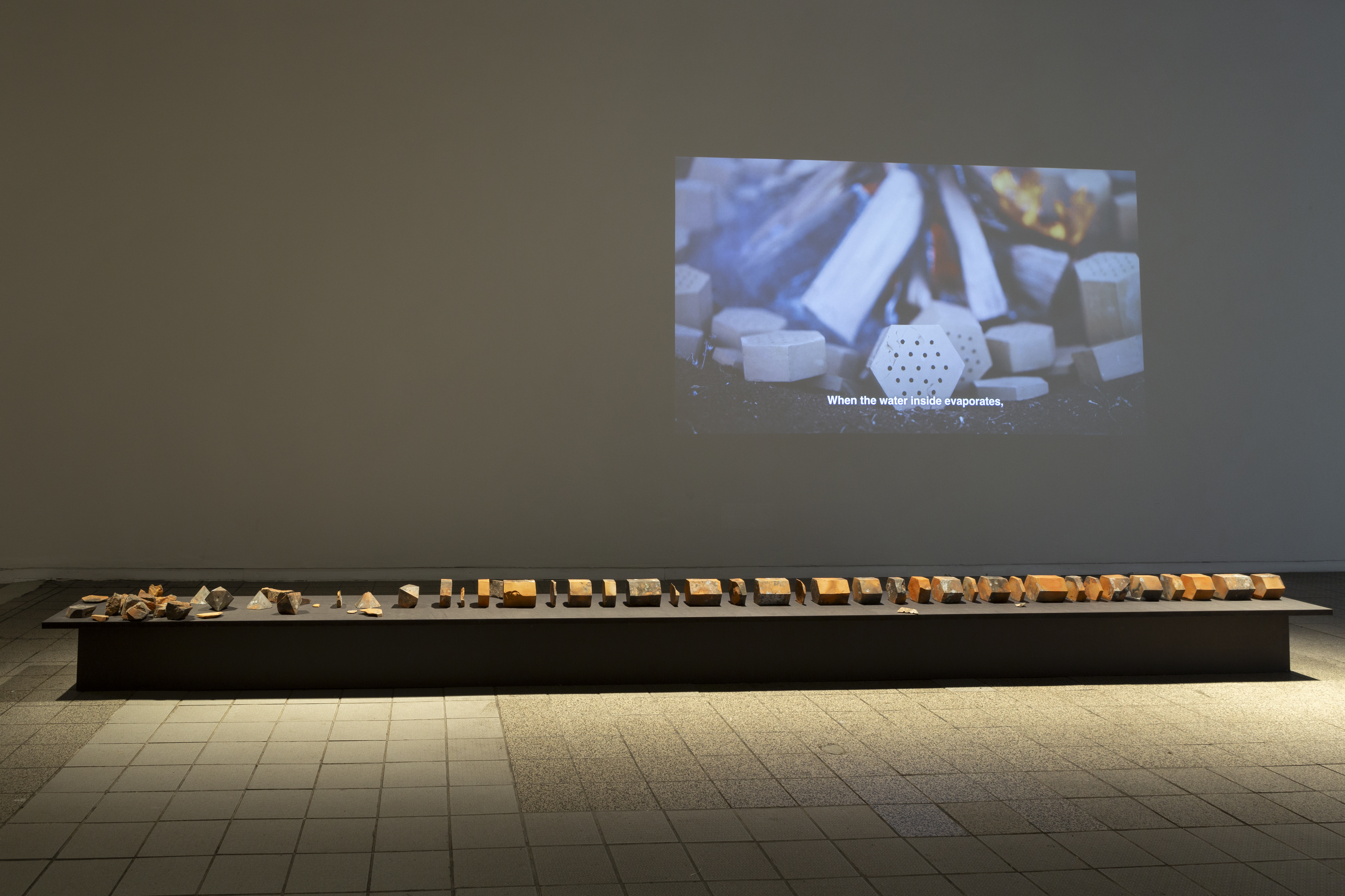 Working in the small village of Boda, one of the possible sites of Hungary’s final repository for high-level radioactive waste, Csilla Nagy and Rita Süveges devised an artist-led field trip as part of SALT. CLAY. ROCK., inviting the audience to a performative-participatory gathering and communal pit-firing session on site. Using this ancient technique to transform clay into ceramics, the artists created shapes and objects inspired by the nuclear fuel rods, which will be stored in the final repository. Drawing on the interdisciplinary field of „nuclear semiotics“, they ask how we can imagine communication with future generations about the location and the toxicity of the nuclear waste repository. Also resonating with this question, Katarina Šević’s artistic and design research deals with nuclear semiotics and the limits of language, meaning and cross-species communication. Her participation in SALT. CLAY. ROCK. is two-fold: she is the author of the project’s visual identity, while her artwork in the exhibition translates the complexity of feelings and facts around nuclear matters into objects, patterns and performative props.