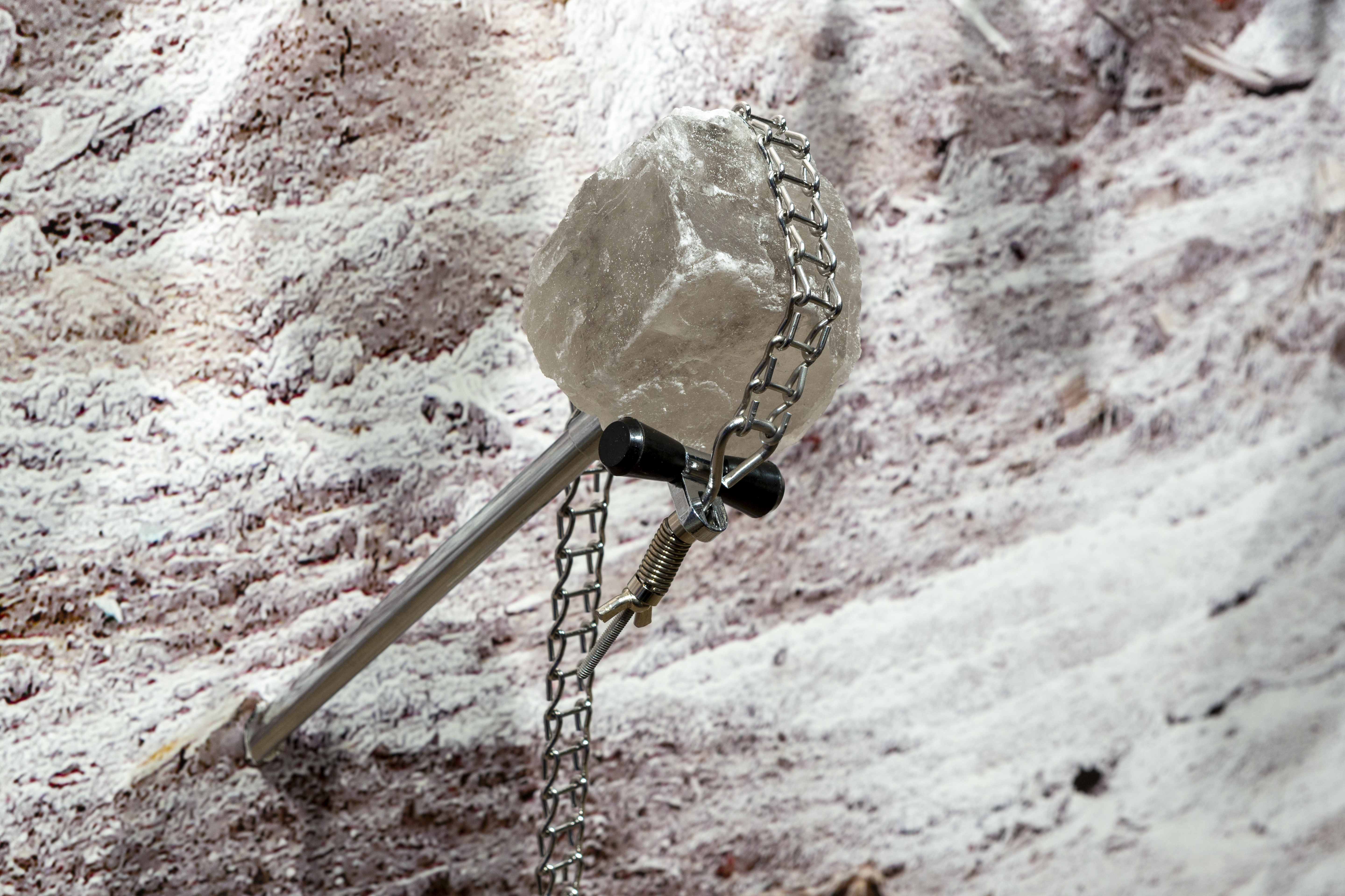 Meanwhile, Krisztina Erdei and Dániel Misota´s work engages with Bátaapáti, a village in Southwest Hungary that hosts an underground nuclear waste repository since 2011. The artists have created a participatory film with the villagers that evokes historical as well as personal moments by re-enacting stories shared by members of the local community. It speaks about everyday life, personal destinies and desires, in contrast to the grand narratives written by political and economic powers. Interested in the intricacies of science, knowledge, power, and our faith in progress, András Cséfalvay crafts an animated video opera in three acts, set in the underground tunnels of the Bátaapáti repository. Inspired by the story of Prometheus and Percy Shelley’s lyrical drama Prometheus Unbound, his mythological figures interrogate our desire to dominate nature and move from nuclear fission to fusion, in order to achieve the utopian horizon of unlimited energy.